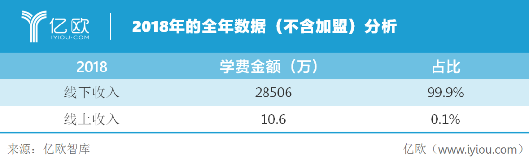在此我们以披露数据较多的大山教育为例。大山教育属于分布在3-4线城市的中大型机构和较为典型OMO教学的代表。通过线下近200家门店(含加盟)和线上学习平台“学习8”展开教学,“学习8”为其自主研发产品。以2018年的全年数据(不含加盟)分析:
