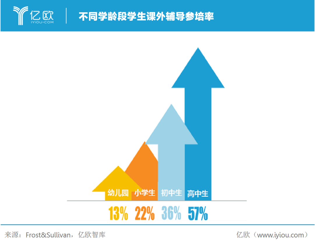 除学校教育外,受到国情影响,我国各阶段学生校外参培率也不容小觑,撑起万亿市场的校外培训体系(按照目前行业流传度最广的数据,在疫情影响前,线下教育与线上教育的占比为9:1)正在面临一次大考。