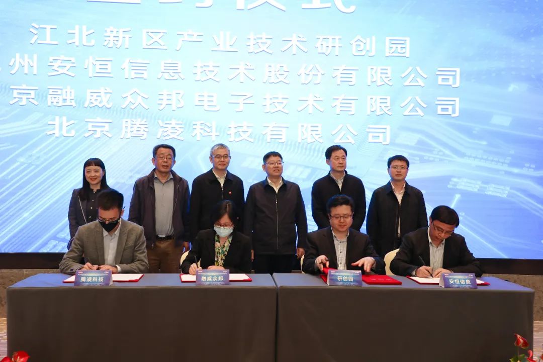 而后举行龙芯生态链企业落户江北新区签约仪式。据了解,本次杭州安恒信息技术股份有限公司、北京融威众邦电子技术有限公司、北京腾凌科技有限公司、江苏嘉擎信息技术有限公司、凯璞庭资本管理(集团)有限公司和互联网域名系统国家工程研究中心6个龙芯生态链合作伙伴与新区产业技术研创园进行意向签约。