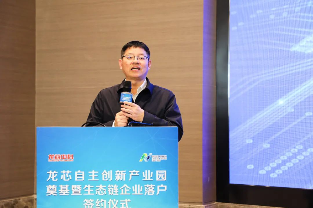 4月24日下午,江苏龙芯自主创新产业园项目奠基暨生态链企业落户签约仪式在新区举行。市委常委、江北新区党工委专职副书记罗群出席活动并讲话,省工业和信息化厅副厅长池宇、市工业和信息化局副局长陈可科、龙芯中科技术有限公司董事长胡伟武参加,新区领导陈潺嵋主持。