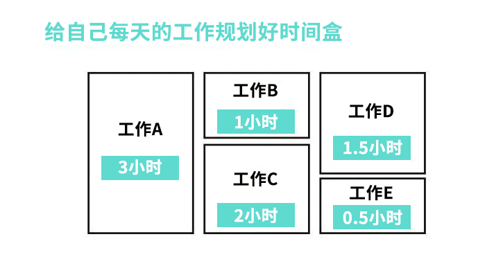 比如今天一共有5项工作要做,那么可以先预估出每项工作需要花费的时间,然后分别填写在各自的时间盒里(如下图):