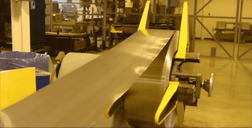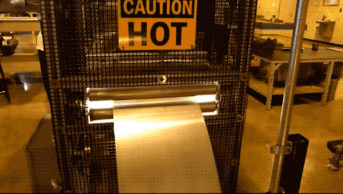 车牌主体一般是以铝板为材料,首先把一大卷铝材展开。接着将展开的铝材送去烤箱加热后定型,这就能把弯曲过的铝材变得平整啦~为什么要有加热这一步?这是为了去除金属的内应力。