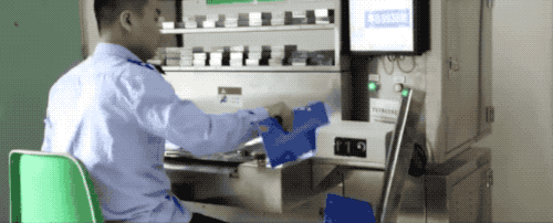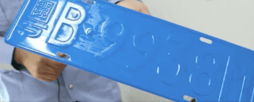 除了手动之外,当然也还有高效的机器擦字。车牌号朝下地送进擦字机里,底部的转辊上涂抹了一层有机溶剂,在带着车牌移动时,就将车牌凸起处擦拭到白色反光膜的字样了~dangdangdang~一个车牌的制作就完成了。话说,如果你拿到手的车牌号上还有点滴蓝墨残存,是可以自己 x 宝上买点擦字水清理干净。