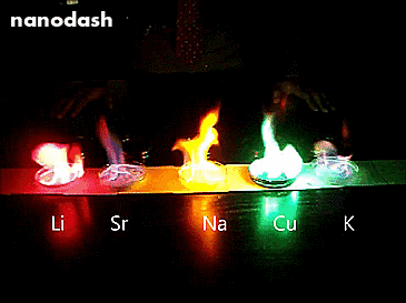 电子在原子中是处于一系列轨道上的。按现在的观点,我们抛却了轨道的概念,认为电子是电子云。但电子云也有不同的分布,当它吸收一个光子的时候,可以从一个较低能量的电子云的分布,变成一个较高能量的分布状态,在这个过程中会发生一些极化和变化。反过来,电子也可以从较高的能量状态,释放一个光子,回到较低的能量状态上。这里的能量变化,体现为一系列的能级,它就像台阶一样可以在上面,进行上下地移动,有一些元素因为这个能量差别,恰好处在可见光光子能量的范围内,所以就可以在火焰燃烧的时候体现出一定的色彩,这就是著名的“焰色反应”。化学中常常用焰色反应鉴别元素的种类。