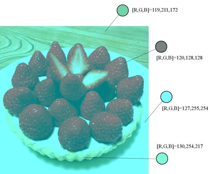 我们大脑甚至可以加入更多的生活经验影响我们感知,比如说下方左边这幅图里,草莓它是什么颜色的,我们明显觉得它是红色的,但如果你真正把其中的像素点,提取出来去看它,会发现它真的是特别不明显的红。这实际上是我的大脑根据生活经验,我们大脑自动做了一个白平衡,等于它自己已经求完了一个方程。再比如说下方右边这件衣服,它到底是白金色还是蓝黑色,不同的人由于生活经验,大脑给的这个信息不一样,最后看到的颜色也会不同。