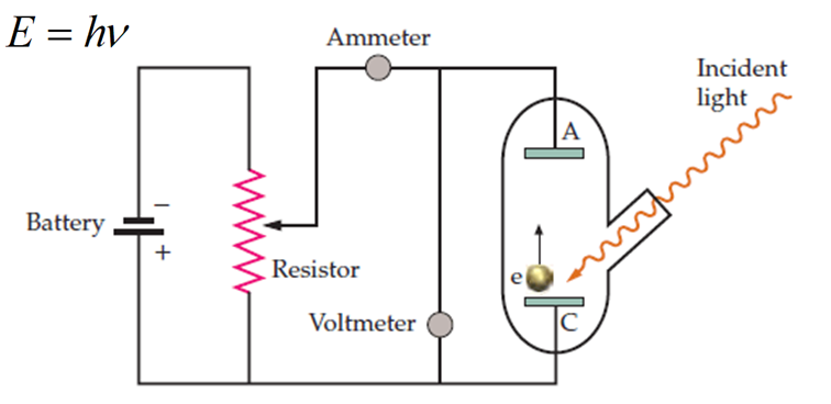 在这里我们看到,光有几个特征的量,一个叫波长,一个叫频率,还有一个叫能量,而且它们之间是具有密切的关系的。比如说有一列波,如果在其传播速度一定的情况下,频率越高,波峰之间的间距,也就是波长,会越短。另外爱因斯坦的光电效应告诉我们,E=hν,也就是说光的能量是与频率成正比的。在这三个概念中,最为核心的其实是能量,光既然是电磁波,它就会有一个周期变化的电场,电子会在这个电场的作用下受到扰动,与光发生相互作用。