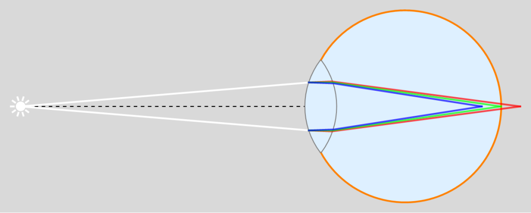 我们经常说“眼见为实”,然而事实恐怕并不这么简单。因为眼睛远远不只是一部忠实记录数据的相机,而是有非常非常多变化的。比如说因为物理因素,会导致一个东西叫“色差”,我们相机里也有色差,眼睛也不能例外。它是由于不同颜色的光,对应不同的折射率,这样同一个点发出的白光,成像在我们视网膜上的时候,前后位置其实是轻微不同的。因而你感受到的不同颜色物体的远近深度是不一样的。
