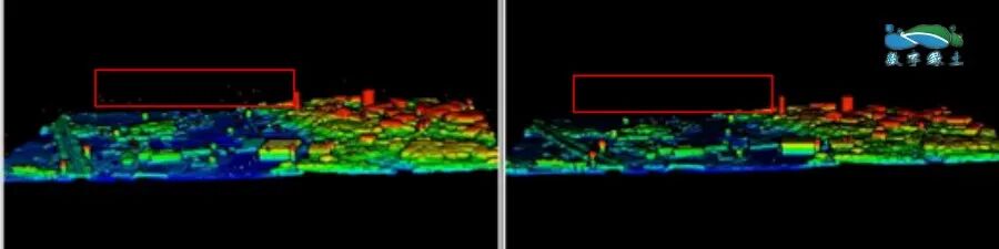 在数据处理之前去除噪声能够更好地还原地物真实形状,提高后续数据处理的精度。因此,想要利用点云数据生产高精度产品,点云去噪变得尤为重要。一般来说,噪声点实际上就是离群点或离群点云,如果不去除噪声点,噪声点云将会参与运算,导致计算结果精度下降。举例来说,在分离地面点生成高精度DEM的过程中,得到原始点云后需采用滤波进行去噪,采用克里金插值或者反距离权重插值法将去噪后的数据生成相应的高精度DEM,但如果有噪声点存在且被识别为地面点之后,DEM的精度就会下降。