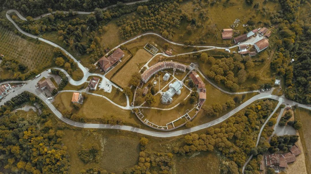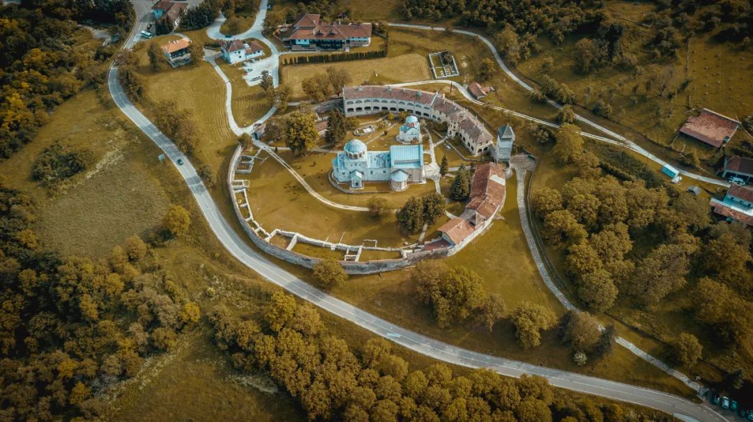 斯图代尼察修道院是被联合国教科文组织认定的世界文化遗产,修道院坐落在山谷间,一道环形的外墙保护着的这座结合西方罗马式和东方拜占庭传统两种风格的修道院,从空中看就像一双手小心翼翼地捧着一块瑰宝。