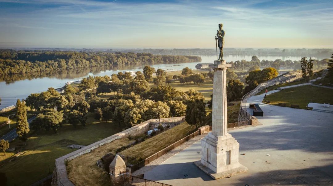 格丹城堡坐落在贝尔格莱德城市的中心,在无人机的视角下,可以像胜利者雕像一样俯瞰萨瓦河和多瑙河的交汇口,这也是当地人喜欢去的公园,日出时候雾气弥漫,像是仙境;而日落时分的柔和光线,也会在河面上反射出迷人的光芒。