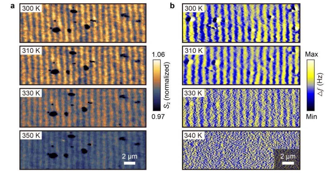 图7 导电性摩尔条纹(a)以及磁性摩尔条纹(b)随温度的演化
