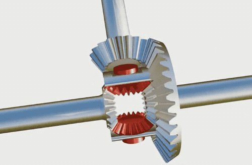 上面这个可以调整左右两个车轮转速的小齿轮就叫做差速轮。