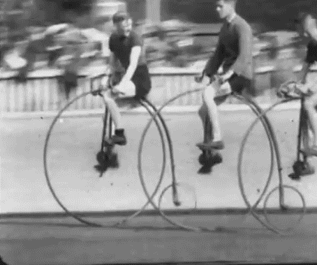 不过,在 James Starley 的时代还没有出现现代意义的自行车,那时候的自行车大都长这样——