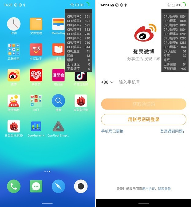 游戏环节的调度方面,魅族 17 和主流骁龙 865 机型的表现也差不多,游戏环节更多的还是依靠三个 2.42GHz 的大核参与游戏,2.84Hz 的超大核偶尔运作运作,也就是意味着魅族 17 还有向上的运行空间。