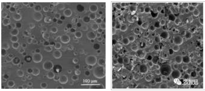 △IC1000(左图)和 IC1010(右图)两种规格的抛光垫的孔隙率对比(突破来源:百度)