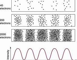 这说明什么?这确实是电子是以波的形式以一定的几率打在屏幕上面的,它每次都打在屏幕上的某一个确定的位置,但它是打在这儿还是那儿,是有空间几率的。它可能有50%的几率打在这,0%的几率打在那个位置,10%的几率打在另一个位置。