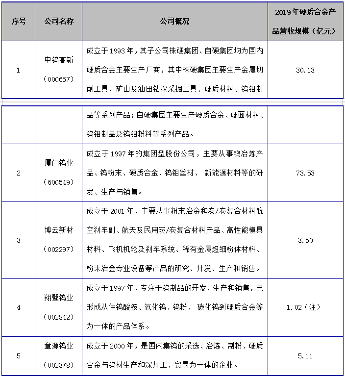 注:翔鹭钨业2019年年度报告未出,故展示其2018年硬质合金产品营收规模。