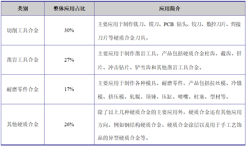 近年来硬质合金纳米晶粒、表面涂层强化、功能梯度合金等新技术、新工艺发展迅速,层出不穷的新技术、新工艺能够满足不同下游市场的各类应用要求。未来硬质合金行业应用领域有望进一步扩大。
