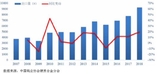 随着我国硬质合金产量和质量的提升,近十年来我国硬质合金出口快速增长。但是,我国硬质合金企业技术装备仍相对落后、研发能力弱、高端人才缺乏,难以满足国内制造业对硬质合金深加工产品的需求,大量高性能、高精度的高档硬质合金数控片等高技术含量、高附加价值的钨制品仍需从国外进口。