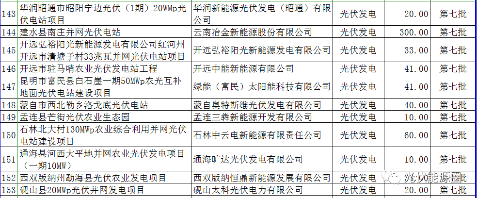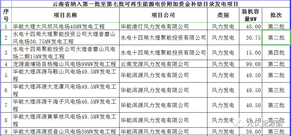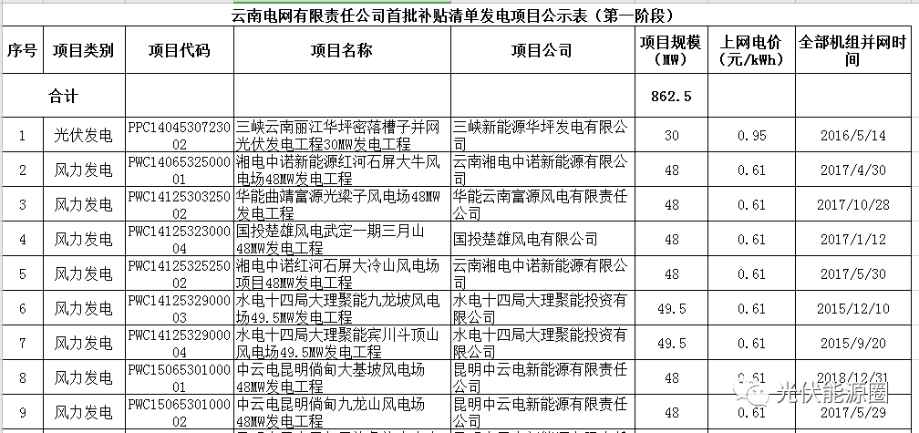 云南电网公司发布《关于云南电网首批可再生能源发电补贴项目清单(第一阶段)的公示》,公示17个项目862.5MW;十六个风电项目,仅一个光伏项目30兆瓦纳入目录。