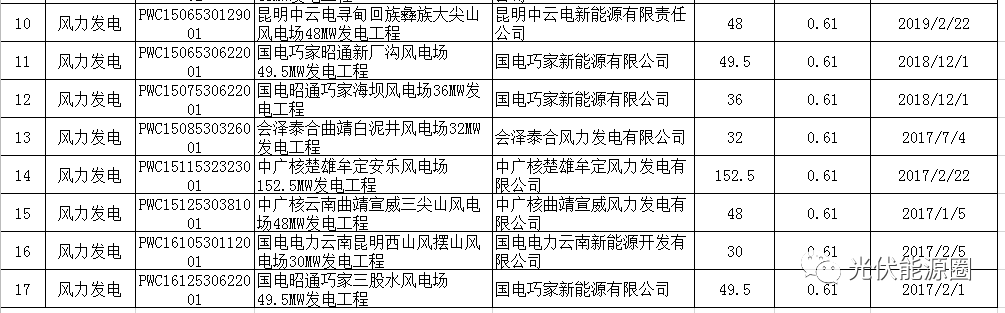 关于云南电网首批可再生能源发电补贴项目清单(第一阶段)的公示