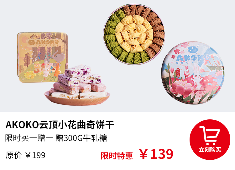 酥脆可口的曲奇饼,配上浓郁绵软的牛轧糖,再加上高颜值包装,非常适合心意相通的两个人一起品尝,给每年的5.20添些甜蜜的回忆。