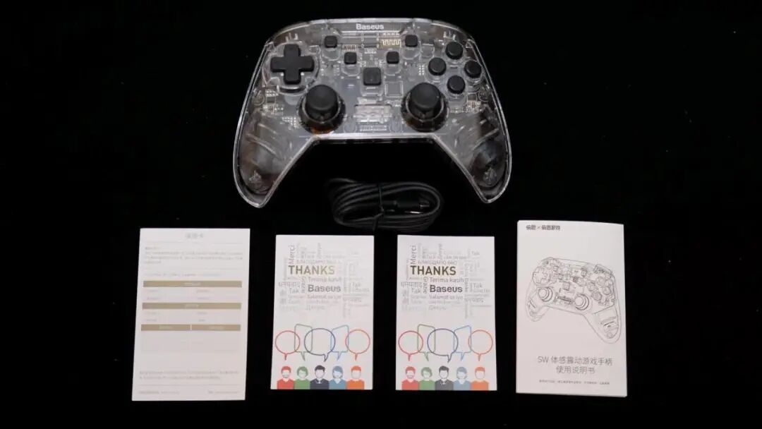 配对方法和一般无线手柄无异。试了一下功能,摇杆手感不错,按键偏肉。HOME 键不能唤醒主机,体感正常。总的来说,手感肯定不比原装 Pro,但是透明好看价格还行,而且不用转换器和线,放一个在家里备着,朋友来聚会的时候用得着。