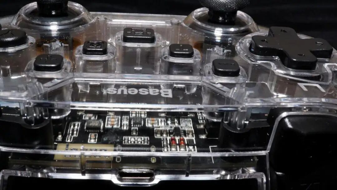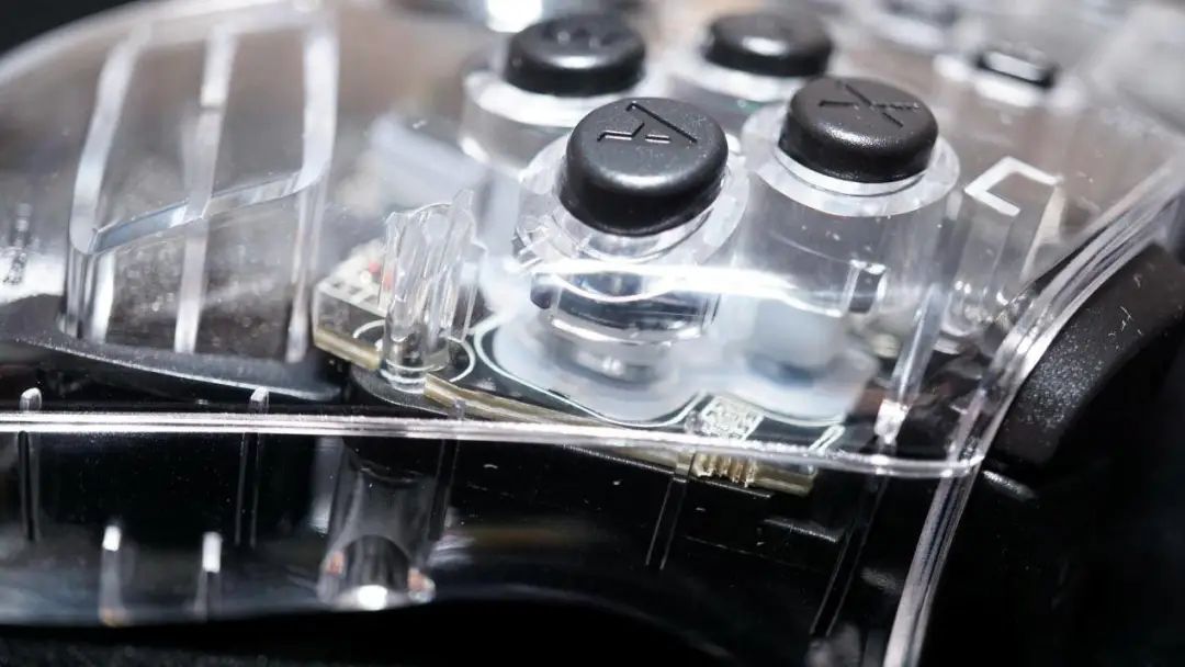 透明的确实好看。手感方面,摇杆反馈不错,按键有点肉。