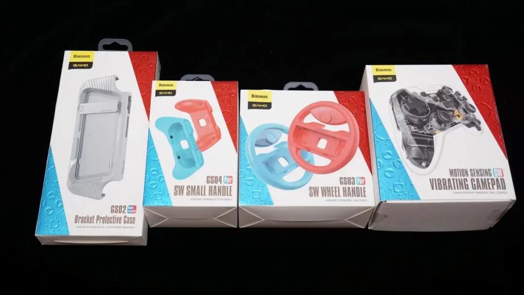 这次入的 GS01 到 04,分别是手柄,保护壳,方向盘,手柄套。店里有带膜的套装,但是膜和包我已经有了,就没重复买。