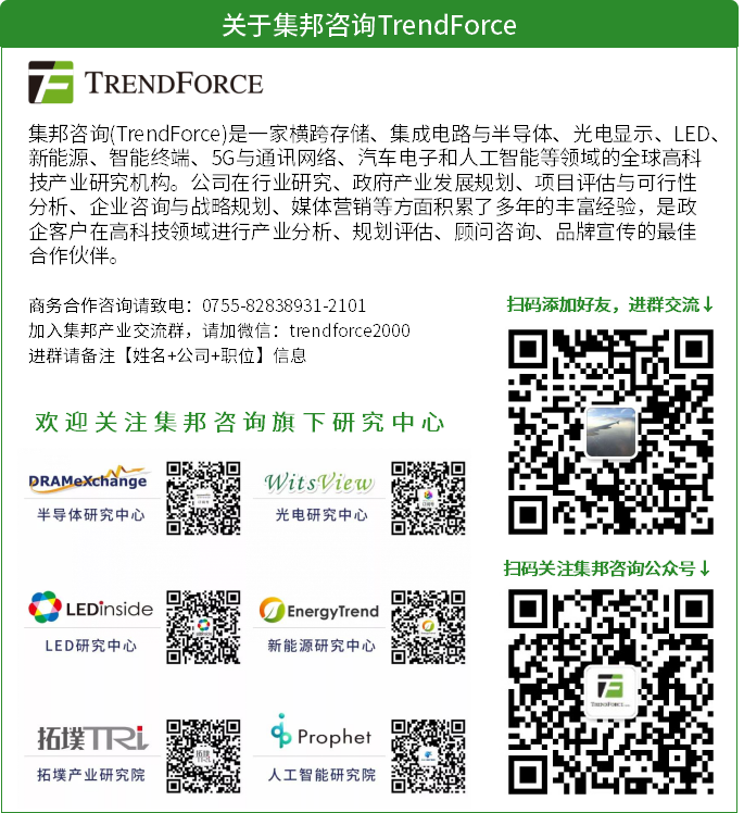 备注:以上内容为TrendForce集邦咨询原创,禁止转载、摘编、复制及镜像等使用,如需转载请在后台留言取得授权。