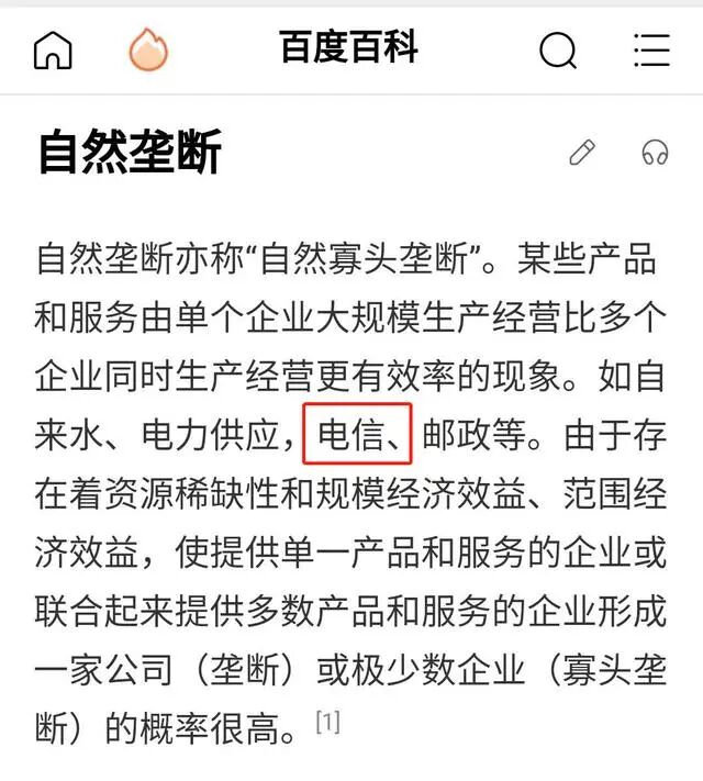 从字面上解读,按照上述文件的界定,显然,电信运营商行业已经不再是自然垄断行业。事实上,在经历了多次拆分、重组事件之后,电信运营商行业早已经"不配"成为自然垄断行业。