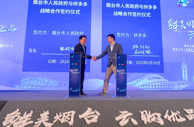5 月 16 日,烟台市政府与拼多多达成战略合作,共同启动「鲜美烟台·云购优品」烟台优品线上云购节活动。此后,消费者不仅能在拼多多平台上买到烟台大樱桃、莱阳梨等特色产品,同时烟台知名的出口产品,也将登陆拼多多,实现出口转内销。