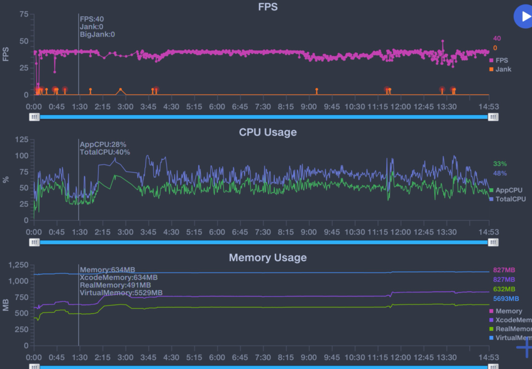而搭载 A12 芯片的 iPad MINI5 以及 Air,虽然是去年的产品,但是放在目前来看性能依旧强劲,游戏大作满画质运行丝毫不会卡顿。在之前的时候,长时间游戏后会由于机身发烫主动降频,画面变暗;但是楼主在这一次测试居然没发生这个情况,即便是机身温度达到了 43 度左右依然没有降频降低帧率,可能是新的版本把降频策略修改了。
