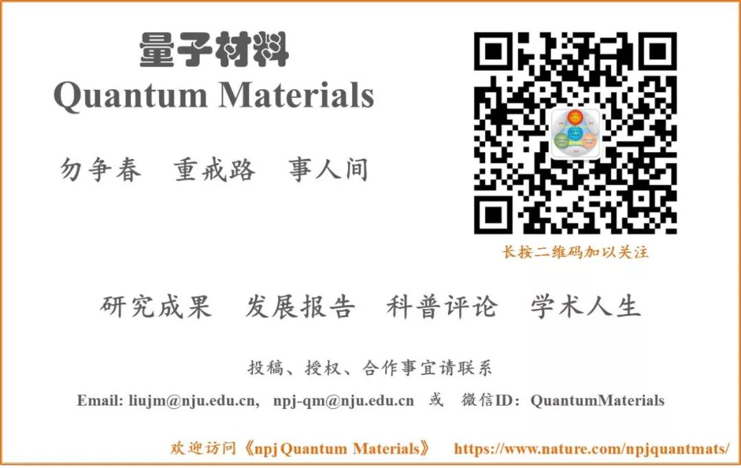 本公众号致力于推广量子材料领域的优秀研究成果,发表相关信息及文章,促进学术交流与进步。为学者和读者服务是我们的唯一目标。