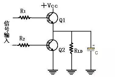 获能,必须使Q1三极管导通,同时使Q2三极管截断,如此负载便可经 由Q1而连接至VCC上,欲使负载去能,必须使Q1三极管截断,同时使Q2三极管导通,如此负载将经由Q2接地。由于Q1的集