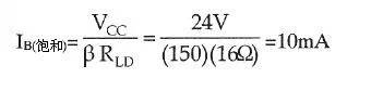 电流与基极电流值解﹕由2式可知,在饱和状态下,所有的供电电压完全跨降于负载