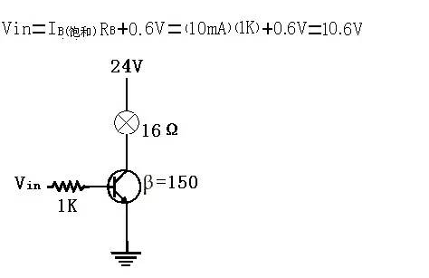,因此欲使三极管截止,Vin必须低于0.6伏特,以使三极管的基极电流为零。通常在