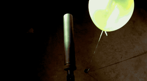 这是没有用消音器时,放在枪支旁边的气球——