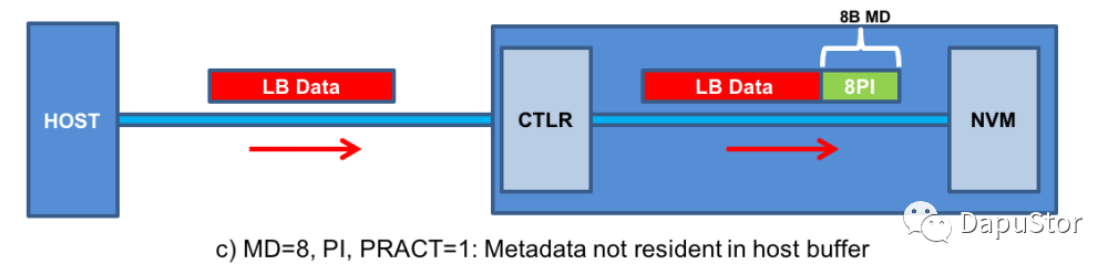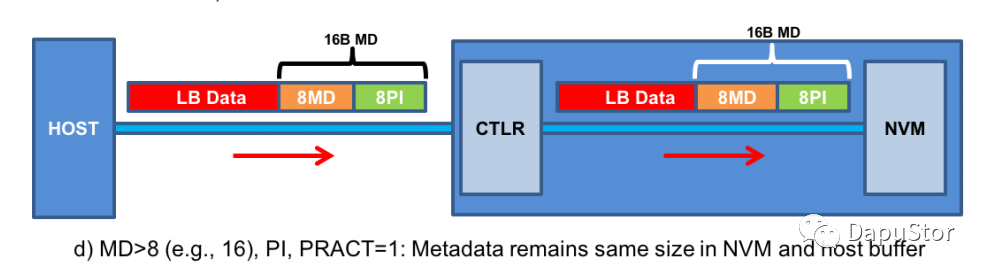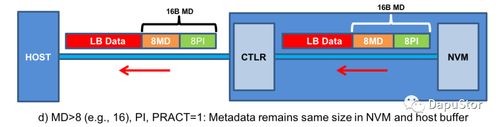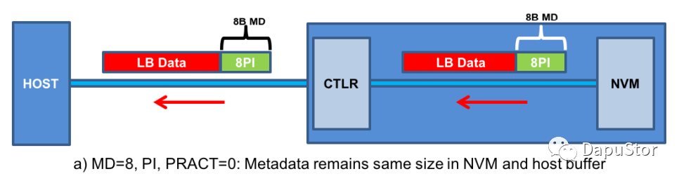 当matedata的大于8B时,那么PI只是metadata的一部分,根据设置PI会置于meta的头部或者尾部。