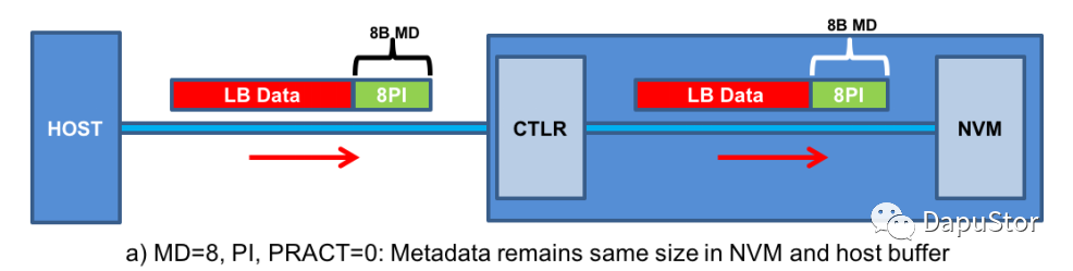 NVME协议称数据保护的数据块为元数据,DIF和DIX采用不同元数据传输方案。