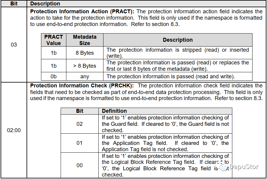 Reference Tag:这个部分的构成主要是SLBA, 若是为0xFFFFFFFFF,则忽略此项的检查;