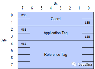 包括2B的Guard区域,2B的Application Tag和4B的Reference Tag,以上的3个参数的数据类型都是大端。