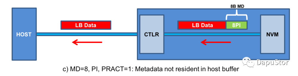 从协议来看这里不同于8Byte的场景,控制器传输的数据是连同MetaData 的PI也一同传输了,这样的话Host需要根据PIL来拷贝有效的metadata。