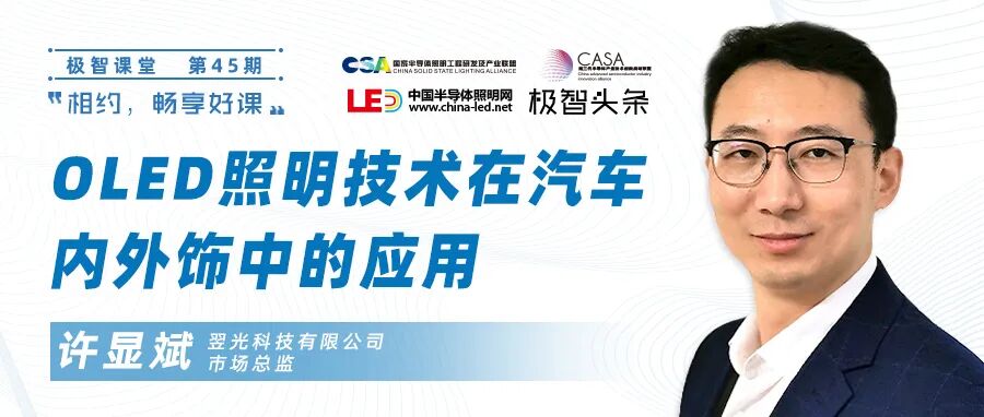 本期极智课堂邀请到了翌光科技有限公司市场总监许显斌带来了“OLED照明技术在汽车内外饰中的应用”的精彩主题报告,分享了当前的状况与未来发展趋势。
