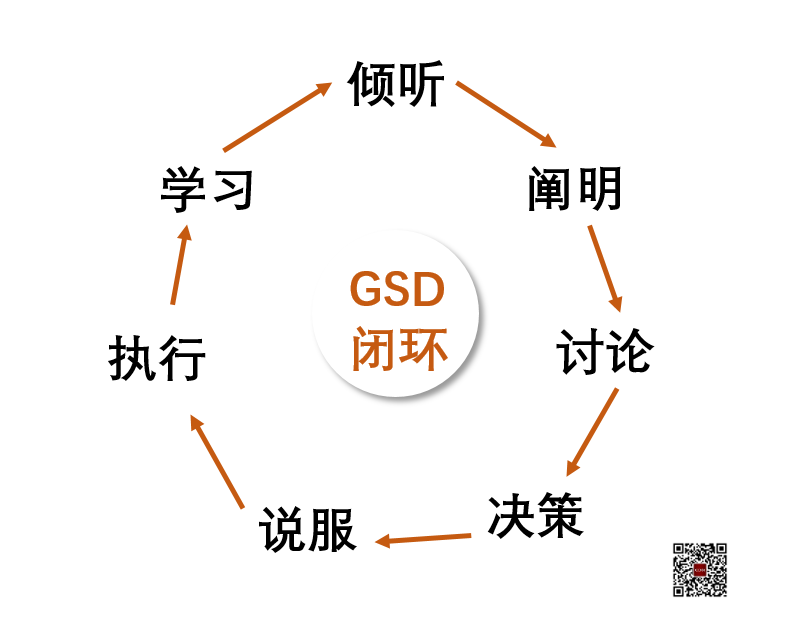 斯科特将该过程叫做“把事做好”(Get Stuff Done),即“GSD闭环”:倾听—阐明——讨论——决策——说服——执行——学习。实践这一过程的关键在于避免冲动,这经常被很多自以为已经“把事做好”的人忽略。