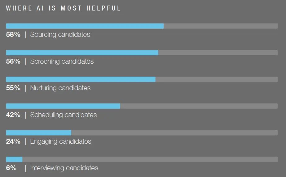 在就业市场上,有一个永恒的定律:招聘者感觉很难找到合适的人才,同时求职者感觉很难找到符合期望的工作机会。造成这种现象的原因之一就是信息不对称问题。随着人工智能近年来的飞速发展,这一技术正在成为招聘和求职过程中的新工具,一方面开始接管 HR 工作中简单重复的部分,帮助企业提升招聘的效率和智能化程度;另一方面帮助求职者从成千上万的职位中筛选出最适合自己的机会,从而更好地去规划职业发展路径。目前,这方面的技术已经在各类招聘及职业社交平台上广泛应用,使得招聘与求职双方的用户体验都得到了极大的提升。作为全球最大的职场社交网络,领英(LinkedIn)目前的用户总量已经达到 6.9 亿以上,在中国拥有超过 5000 万名用户。对于领英来说,人工智能技术是如何融入面向众多招聘者和求职者的日常服务的?我们先来了解一下人工智能在求职招聘领域的应用情况。一般来说,人工智能在寻找候选人、筛选和培养候选人时最有帮助。对于招聘流程中更加复杂的部分,例如与候选人者积极沟通和面试候选人,人工智能能够帮助到的地方相对少一些。同时,人工智能技术的应用也可以弥补人工招聘工作中的诸多不足,比如筛选速度、主观成见、人才分析等。根据领英发布的 2018 招聘趋势报告显示,在接受调查的专业人才和招聘人员中,67% 表示人工智能有助于节省时间,43% 表示人工智能有助于消除偏见,31% 表示人工智能在寻找最佳候选人方面很有助益。