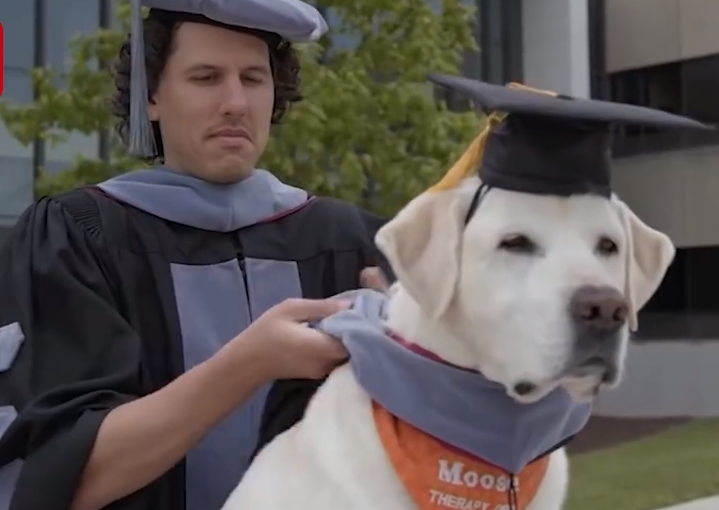 现年8岁的穆斯是库克心理咨询公司的一只治疗犬,2014年开始服务于弗吉尼亚理工大学,是该校4只治疗动物和促进心理健康大使之一。美国有线电视新闻网18日报道,穆斯15日获得这所高等院校兽医专业颁发的名誉博士学位。