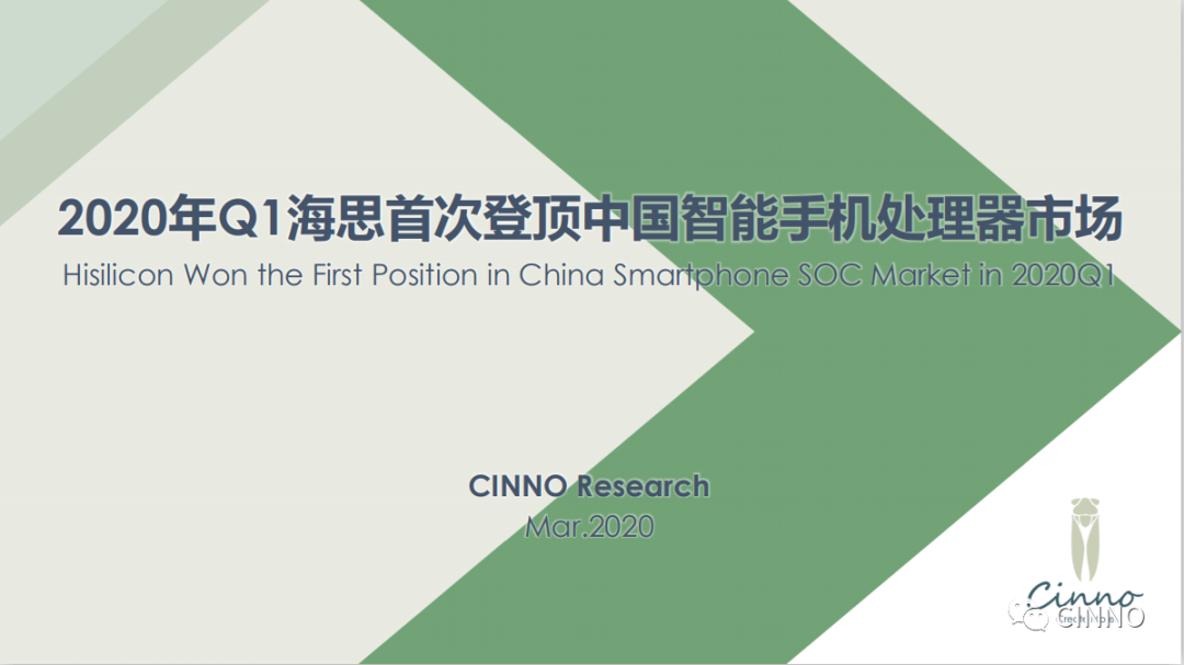 CINNO Research:2020年Q1海思首次登顶中国智能手机处理器市场
