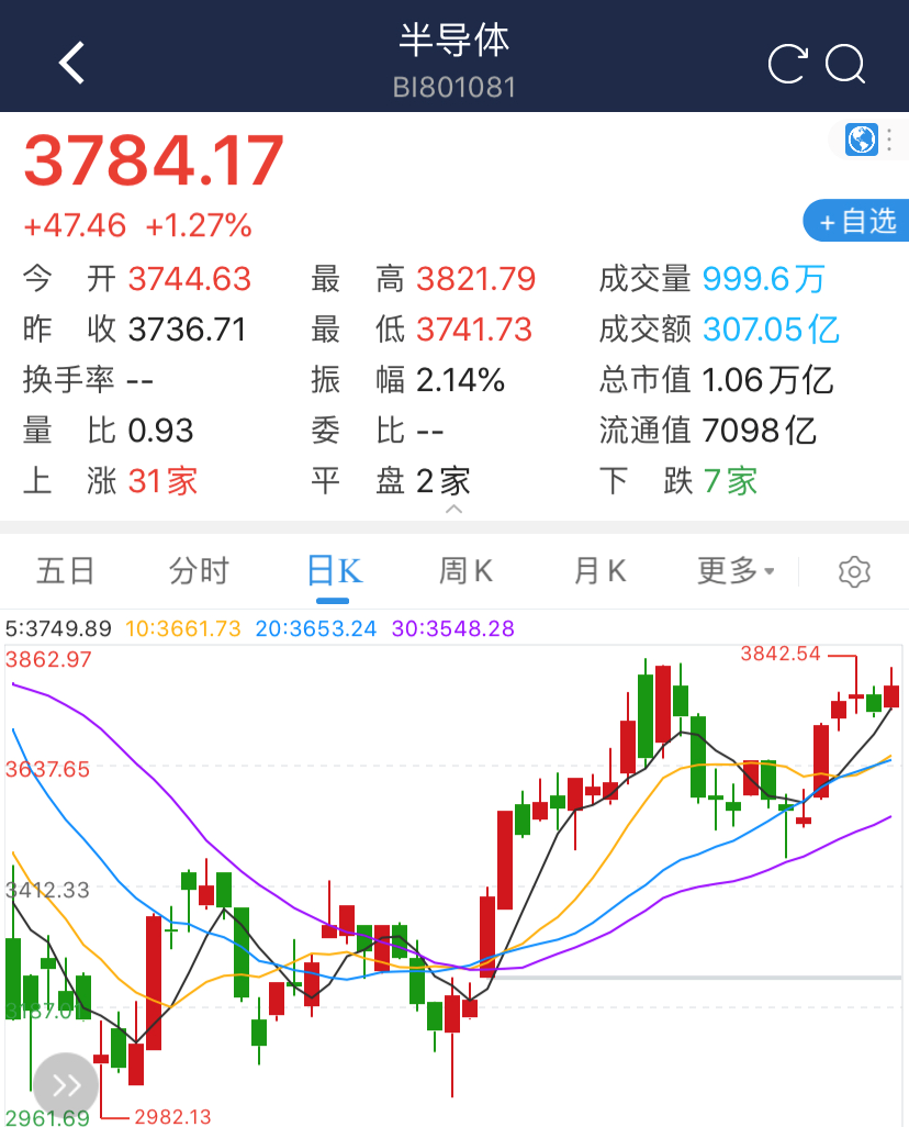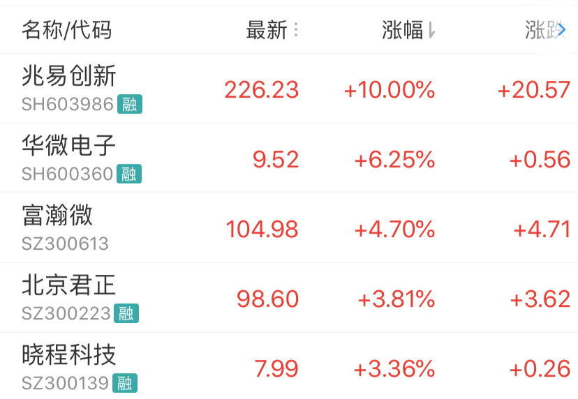 半导体最大涨幅TOP5