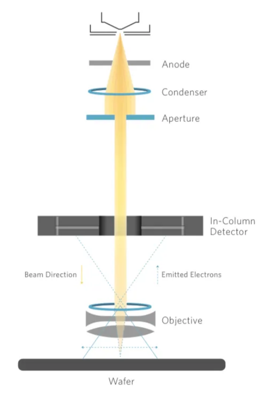 YieldStar 375F2016年,阿斯麦以31亿美元收购了Hermes Microvision Inc. (简称HMI,汉科微),后者成立于1988年,目前目前已经成为世界各大晶圆代工厂与晶圆记忆体厂最大的电子束检测设备供应商,主要客户是台积电和英特尔,拥有三款HMI eScan系列电子束检测设备。 但是在整个前道量检测市场,光刻机巨头阿斯麦并没能在前排留坐,市占率仅为8.6%左右。这片市场一大半都长期被美国企业科磊(KLA-Tencor)垄断。市场份额如此之低,阿斯麦显然不甘心如此为人后,一直在潜心研发多光束检测设备。 什么是多光束检测?这要从前道量检测的基本方法说起,它一般分为光学量测和电子束量测。光学量测通过向晶圆发射光源,通过光的反射、收集从缺陷处反射回来的光进行衍射光谱间接测量,类似于雷达成像原理。 光检测分为明场和暗场,明场在更大角度测量光线,暗场可测量以较小角度反射的光。从缺陷处反射回来的光在白色背景下会显得较暗,借助此特征可定位缺陷区域,然后借助一定手段将缺陷区域数字化。 目前光学检测设备多使用193nm光源。其优点在于成像快,分辨率高,一小时可以检测1到2个晶片。缺点是无法直接成像,需要借助其他工具,检测精度也有限,根据ASML和其他公司的数据,明场在SRAM中的灵敏度低于5nm,而暗场低于15nm。 电子束量测利用电子的特性,来自电子束的电子撞击并穿透样品表面,然后电子散射并反弹回工具中的检测器。 电子束检查工具可以检测两种类型的信号-背向散射电子(BSE)和二次电子。BSE是源自结构深处的电子。二次电子来自表面。通过信号检测电子束可以在晶圆掩膜上「写」出缺陷处图案。 优点是可以直接呈现缺陷的具体形貌,且检测精度非常高,可以发现低于1nm的结构缺陷。一个缺点是电子束成像量测操作时需要切割晶圆,具有破坏性。 电子束检测最大的问题是吞吐量太慢,比光学检查时间慢1000倍。对于7nm及以上制程的复杂掩膜,写入时间甚至超过了30小时。 目前前道量检测常用的办法是光学检测和电子束检测相结合,先用光束快速确定缺陷区域,再用电子束对缺陷区域精确成像。提高检测效率并降低对晶圆的破坏性。 这种方法存在的问题是,受限于光束的精度缺陷,光量测无法定位高制程的晶圆缺陷,电子束又太慢,7nm及更高制程的晶圆缺陷都很难定位到。与单光束工具相比,多光束掩膜写入器使用成千上万个细小束,可以以更快的速度对高级掩膜进行图案化或写入,也能写入更复杂的掩膜图案。IMS多光束工具平均12个小时可以完成掩膜写入工作。 所以,ASML、NuFlare、KLA-Tencor以及被英特尔收购的IMS Nanofabrication等公司多年来都在研发「多光束检测」。但由于制造复杂,出货量非常小。且多光束一直存在光束之间互相干扰的问题。